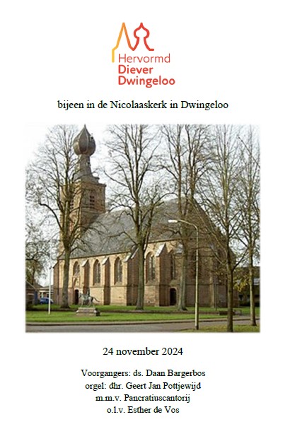 zondag 23 november 2025 om 10:00 uurds. Daan Bargerbos. Gedachtenisdienst in de Nicolaaskerk DwingelooVoorganger(s): ds. Daan Bargerbos Organist: Geert Jan Pottjewijd |