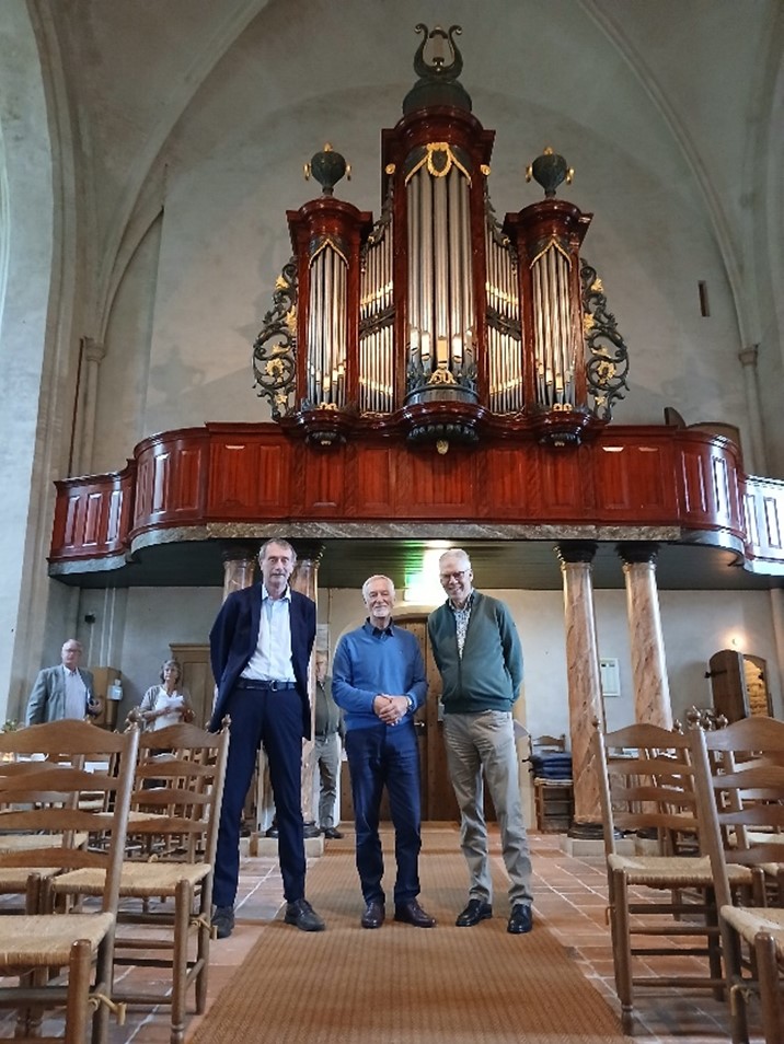 Nieuws kerkenraad Samen bouwen,                kerk voor het dorp Organisten in de schijnwerpers  Op zondagmiddag 12 oktober vond een bijzondere eredienst plaats in de historische Pancratiuskerk te Diever. Dit was ter gelegenheid van drie jubilarissen; Harro Kraal, Geert Jan Pottjewijd en Jans Vrieling; de drie vaste organisten van de Hervormde Gemeente Diever-Dwingeloo (PKN). Zij verzorgen al jarenlang de orgelbegeleiding van gemeentezang en cantorij, geven prachtige muzikale intermezzo’s en leveren bijdragen aan bijzondere diensten. Zij zijn het die de monumentale orgels, het van Oeckelen-orgel (uit 1882) in de Pancratiuskerk en het Van Gelder-orgel (uit 1886) in de Dwingelse Nicolaaskerk tot leven weten te brengen met hun sprankelende en soms betoverende orgelspel. Daar zij alle drie al meer dan 50 (!!) jaar het kerkorgel bespelen, werden zij tijdens deze feestelijke middagdienst gezamenlijk in het zonnetje gezet. Ook met dit organistenjubileum konden de aanwezigen genieten van hun muzikale talenten en luisteren naar een door hen zelf uitgekozen muziekstuk. Zo vertolkte Harro Kraal de Aria uit de Goldbergvariaties (BWV 988) en enkele variaties daarop. Jans Vrieling bracht de eerste delen van een Andante in D-dur van Felix Mendelsohn Bartoldy ten gehore. En Geertjan Pottjewijd besloot deze feestelijke viering met Fuga in D van Christian Friedrich Ruppe en de vrolijke Verjaarsmarsch van Hendrik Pieter Steenhuis. Na het in ontvangst nemen van alle welgemeende felicitaties (naast bloemen, wijn en oorkondes), beklom collega organist Andries Kamphof het orgel en zette het magnifieke lied “Het Gebed” van DC Lewis in, met vocale bijdrage van ds. Daan Bargerbos. Een mooi eerbetoon en prachtig sluitstuk van deze gedenkwaardige herfstmiddag! Op de foto: Geert Jan Pottjewijd, Harro Kraal en Jans Vrieling (v.l.n.r.) onder het van Oeckelenorgel in de Dieverse Pancratiuskerk. ------------------------------------------------------------------------------- Drie ambtsdragers namen afscheid na een lange staat van dienst en een nieuwe ambtsdrager werd verwelkomd. .jpg) Zondag 7 september 2025 werd van 3 ambtsdragers afscheid genomen, te weten, Greet Oosterveld, Thom Oosterloo en Roelof Bolding. Alle drie hadden een lange staat van dienst binnen de voorheen hervormde gemeenten Diever en Dwingeloo. Ze werden zowel tijdens de dienst als na de dienst toegesproken door ds. Daan Bargerbos en de voorzitter van de kerkenraad, Riemie Godeschalk-Dijkstra. Dhr. Peter Klapwijk werd bevestigd tot kerkvoogd. Vele kerkgangers schudden de afscheid nemende ambtsdragers en de nieuw komende ambtsdrager de hand. Greet Oosterveld Ds, Daan Bargerbos noemde Greet onder andere een vrouw met het hart op de goede plek, die zich inzet voor de medemens die dat nodig heeft. Ze doet dat met een luisterend oor en met een vaardige hand en daarbij zien we altijd een groot enthousiasme. “De afgelopen tijd heb je aan den lijve gemerkt, dat het ook goed is om aan jezelf te denken en jezelf niet voorbij te lopen. Er breekt nu een tijd aan, waarin je meer tijd voor jezelf en voor anderen krijgt. Het is je van harte gegund”, aldus ds. Daan Bargerbos. Voorzitter Riemie Godeschalk-Dijkstra ging in op het ambt als ouderling. Greet heeft samen met mede ouderlingen veel georganiseerd, zoals de bezoekronde aan jongere gemeenteleden van 30+, wat leidde tot de vorming van een gespreksgroep 30+, de stiltehoek in de kerk van Diever, de Aswoensdagviering, de preek van de leek, de kloosterweekenden, bezoekwerk en als lid bij de werkgroep ‘bezinning en inspiratie’, van waaruit veel activiteiten worden georganiseerd, ook voor mensen van buiten de kerk. Ook is ze daarnaast nog koster. “Jouw toewijding en inzet wordt zeer gewaardeerd en daarvoor willen wij je heel erg bedanken”, aldus voorzitter Riemie. Thom Oosterloo Ds. Daan Bargerbos gaf aan dat Thom al heel lang geleden voor het eerst werd gevraagd om als diaken mee te doen. Dat heb je altijd trouwhartig gedaan, je was rustig en bescheiden aanwezig, maar als het nodig was met een duidelijke mening. “Voor jou staat de ander centraal, de mens die hulp nodig heeft en het mooist vond je dan ook als je iets kon weggeven aan mensen die dat goed konden gebruiken. De contacten met diverse gemeenteleden zullen zeker blijven, maar we zullen je aanwezigheid in de kerk en in vergaderingen ook zeker gaan missen. Het ga je goed”. Voorzitter Riemie vertelde dat Thom een deel van zijn diaken-periodes ook de financiën heeft beheerd en dat hij in een tijd dat er een groot tekort was aan kerkenraadsleden zich weer heeft aangemeld om zich weer in te zetten voor de kerk. Ook Thom is een tijdlang koster geweest. En, wij hebben vele jaren genoten van de kerstbomen die je aan de kerk schonk, soms zo groot dat de kerk te klein was. “Beste Thom, je was een stille kracht maar hebt met plezier en inzet je ambt vervult. Wij bedanken jou hiervoor”, aldus de voorzitter.  Roelof Bolding Ds. Daan Bargerbos: “Roelof, jij neemt na vele intensieve jaren afscheid als ouderling-kerkrentmeester. Ik vermoed dat er niemand hier in de kerk is, die jou niet kent. Met een onvermoeibaar enthousiasme ben je aanwezig op diverse fronten. Je kennis van de geschiedenis van hervormd Dwingeloo is enorm. Jou heb ik al leren kennen tijdens de beroepingsperiode, waar jij als voorzitter van de beroepingscommissie met groot enthousiasme en met kennis van zaken de hele rit begeleidde. Als voorzitter van de kerkrentmeesters was je ook nauw betrokken bij de verbouwing van deze Nicolaaskerk. Maar een van de belangrijkste feiten is voor jouzelf, dat we als hervormde gemeenten Diever en Dwingeloo zijn gefuseerd tot één hervormde gemeente Diever-Dwingeloo. Jouw werk als ambtsdrager komt nu tot een eind. Er breekt hopelijk een tijd aan waarin je met meer rust van alles kunt doen, samen met Elly, met jullie kinderen en kleinkinderen. En hopelijk blijf je enthousiast aanwezig in al die andere bezigheden, die niet perse verbonden zi